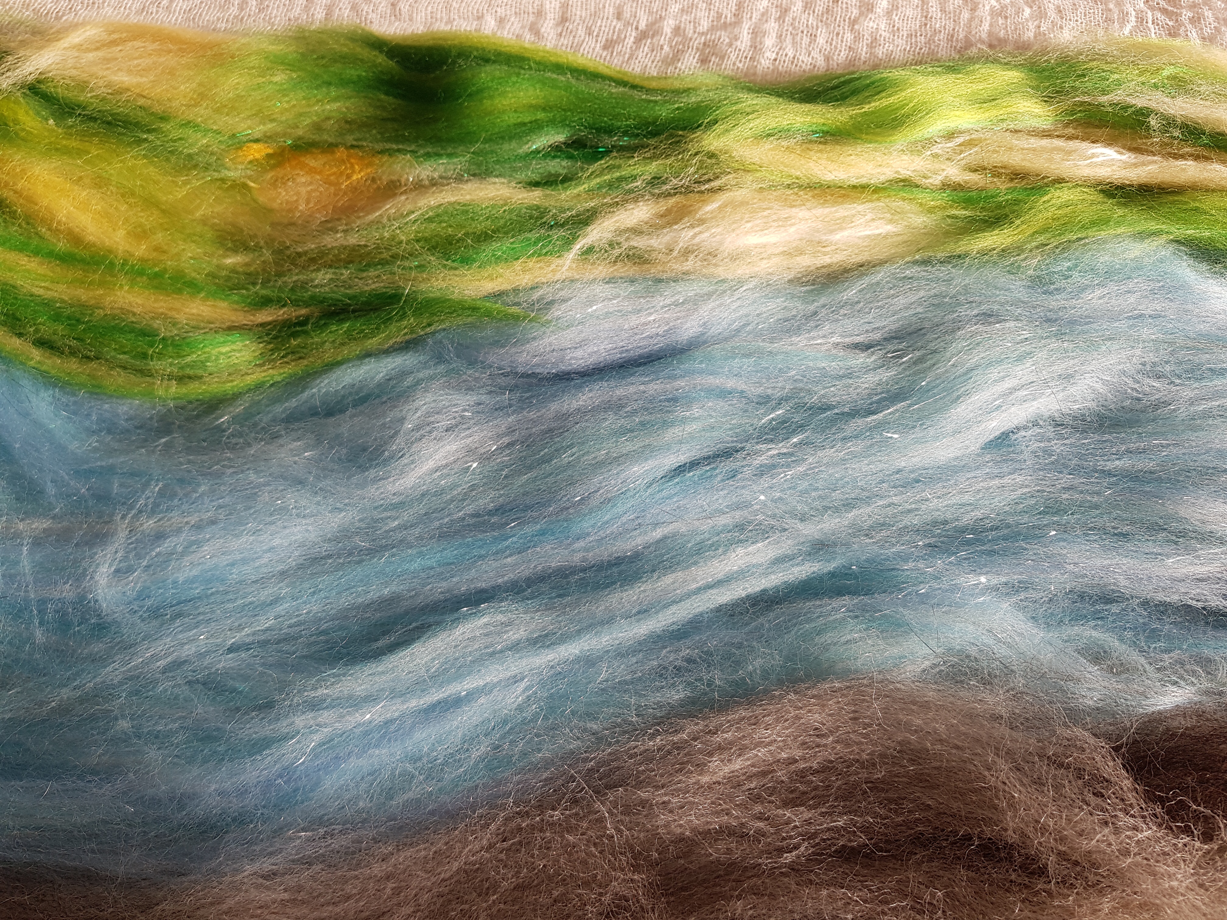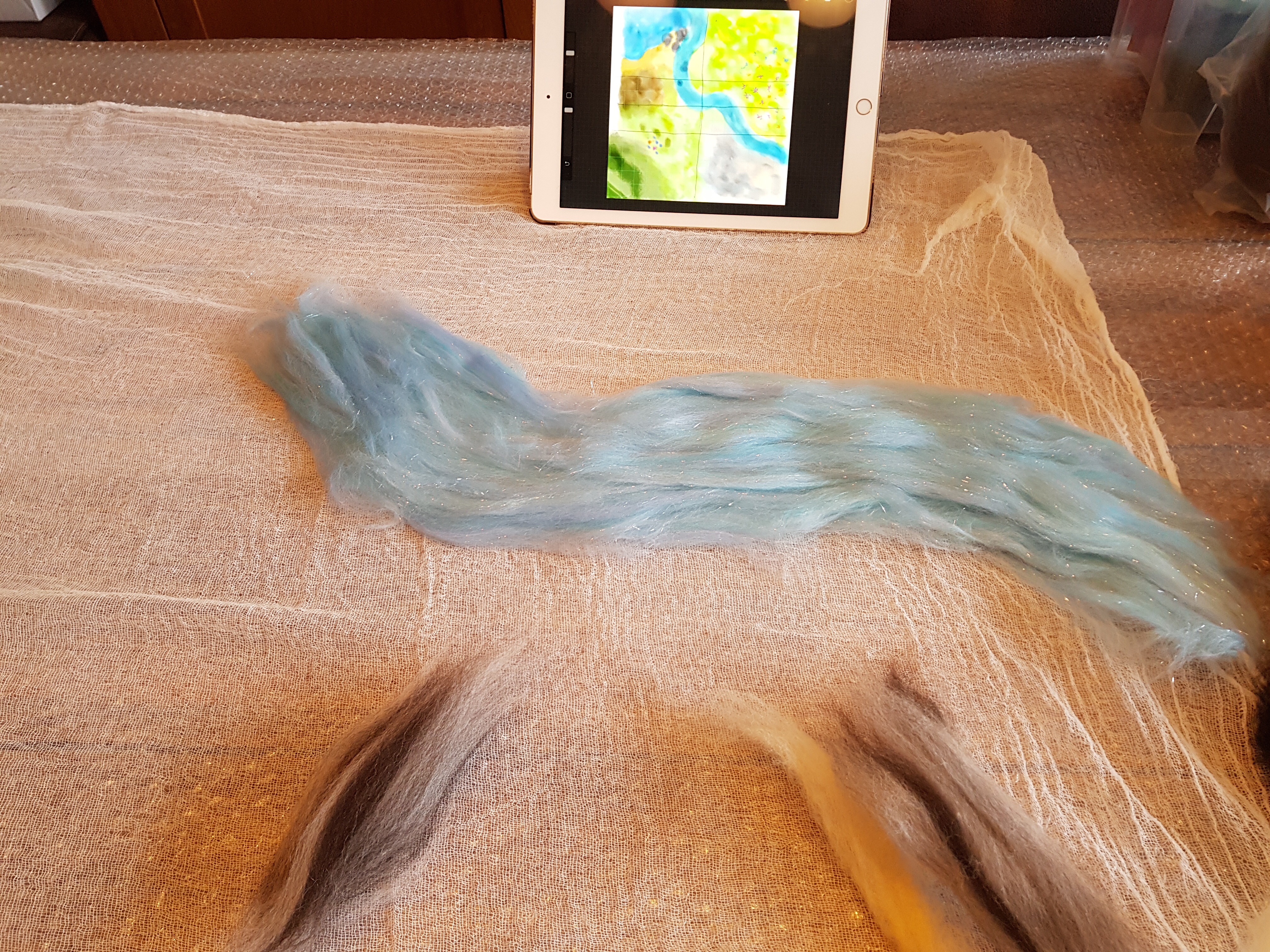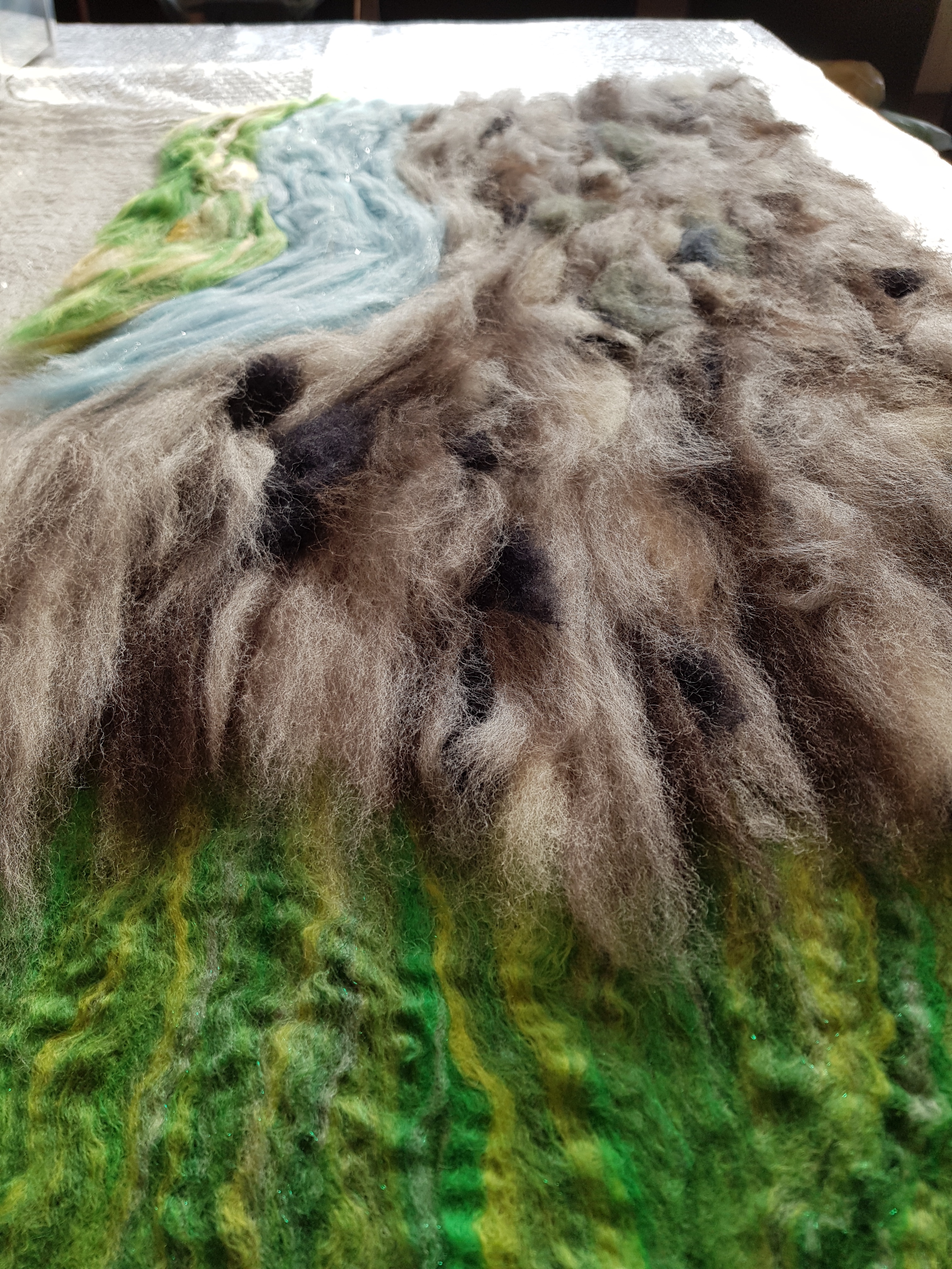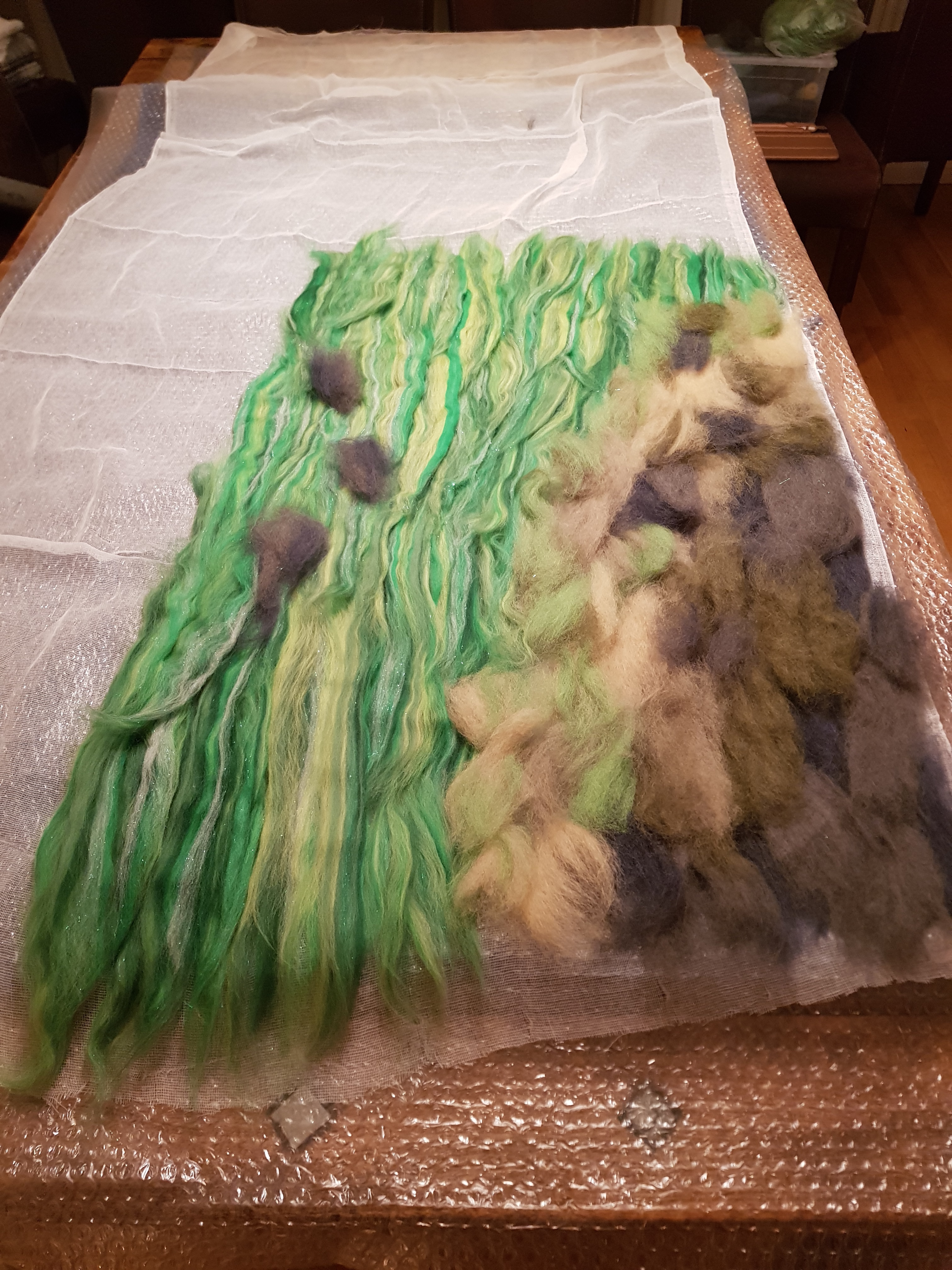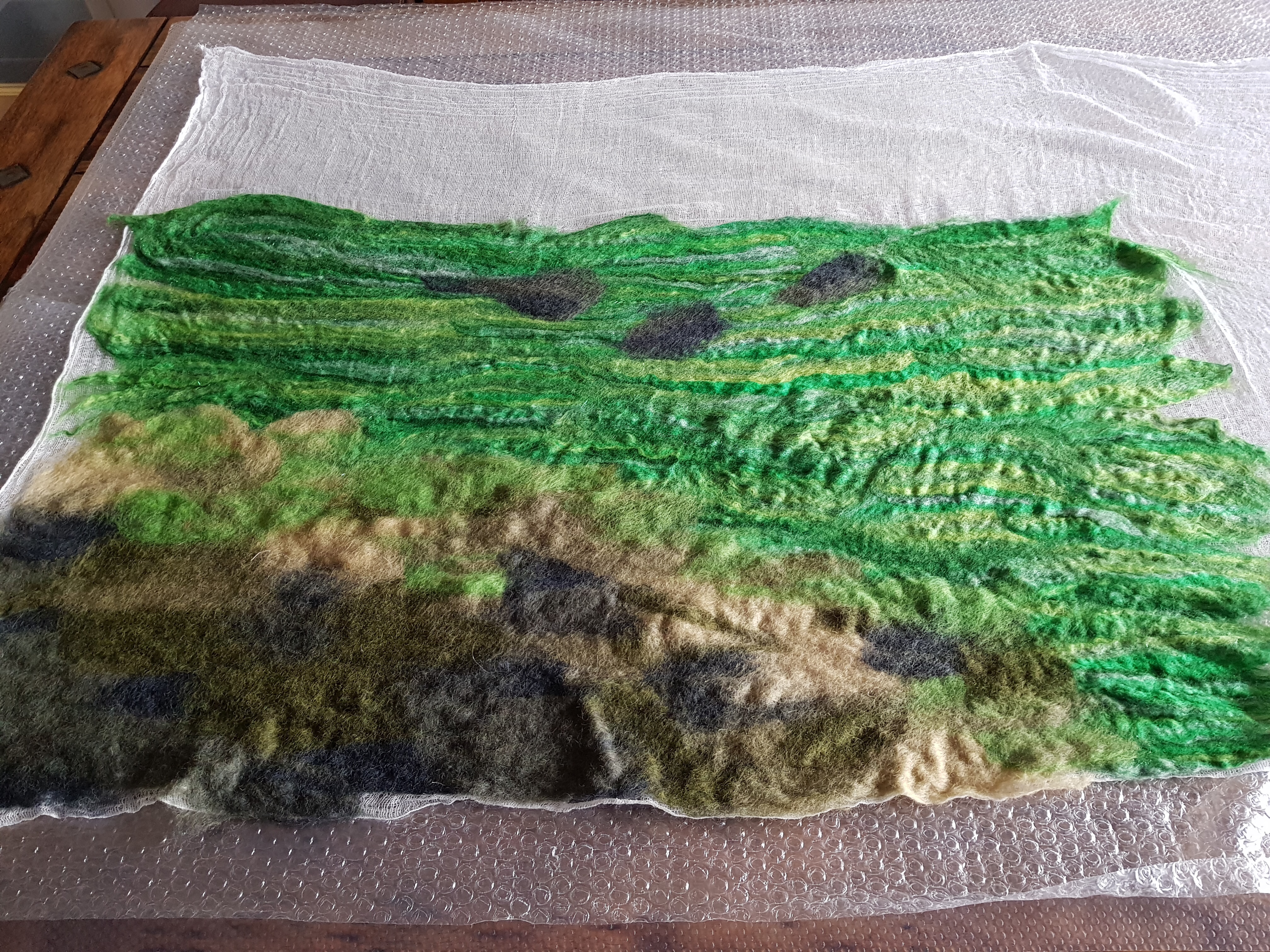 Sedan började jag med ett nytt, större projekt, nuno tovning. Det här ska bli ett landskap har jag tänkt, men jag får göra det i olika delar.