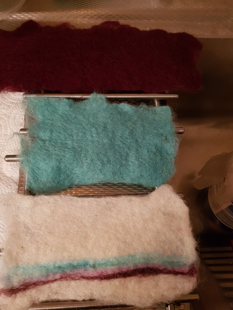 Under de senaste dagarna har jag ägnat mig åt våt tovning. Jag började med att våttova några tygstycken, som ska bli kläder till en figur.