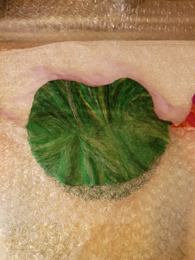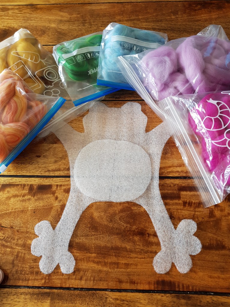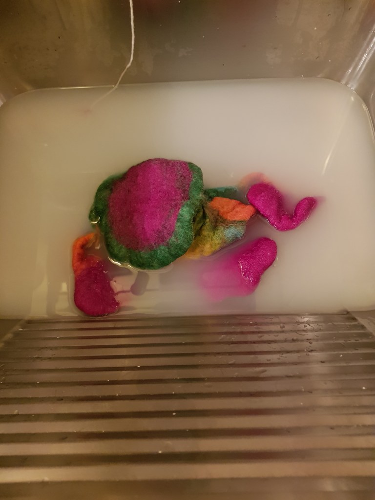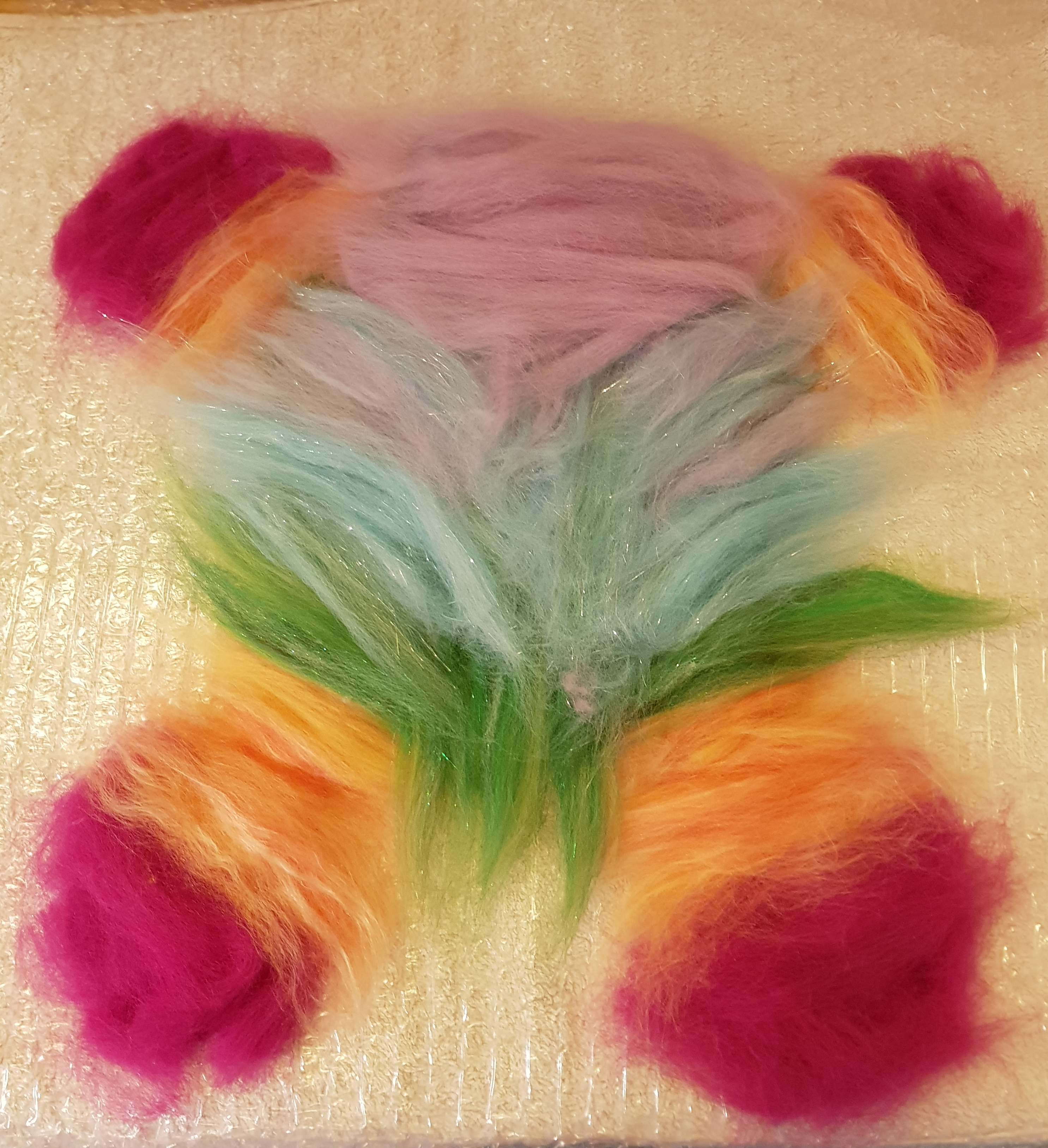 Sedan lade jag ut ull i olika färger och våttovade på båda sidor.