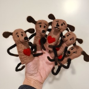 Så har mitt lilla företag kommit igång och jag jobbar på min första beställning. 20 st fingerdockor ska tovas! 10 st av hunden Bobbo och 10 st av katten Morris.