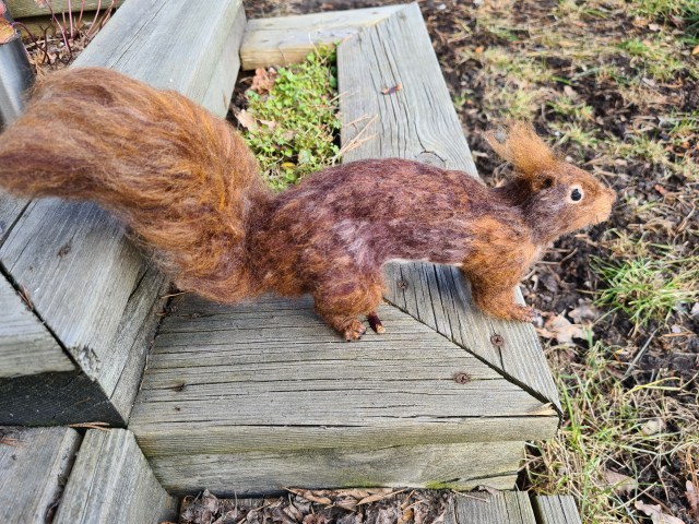 Den första är en ekorre som skulle vara mer lik en riktig ekorre än den jag tidigare har tovat och så ville jag att den skulle vara på språng. Den är ungefär lika stor som en riktig ekorre, det största djuret jag har tovat hittills. Du hittar den här: DJUR