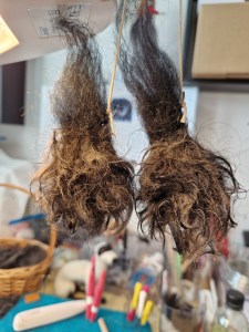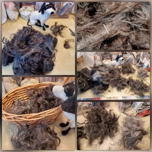I dagarna har jag sorterat den pälsen jag fick i små högar, en lite mer lockig svart päls och en hög med lite mer gråare päls.