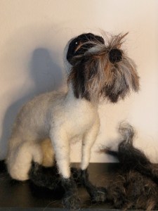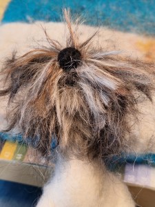 Jag testade att tova päls på öronen och det gick relativt bra utan att blanda i ull. 😃 Jätte skoj! Eftersom pälsen på öronen är lite vågig prövade jag att spraya lite vatten på dom och kramade upp pälsen en aning. Har jag tur så kommer den att ligga så även då den har torkat.