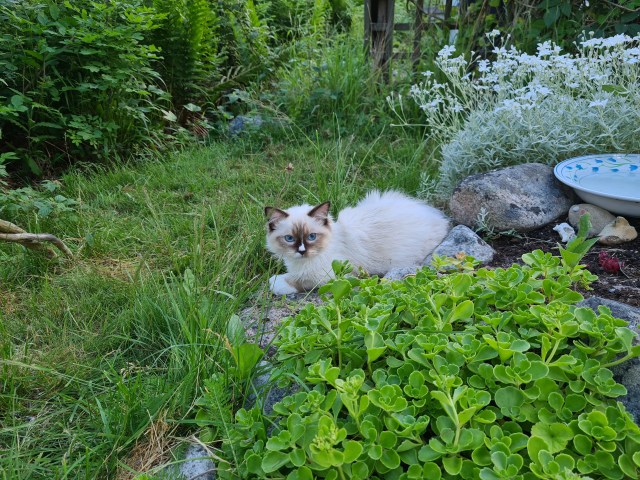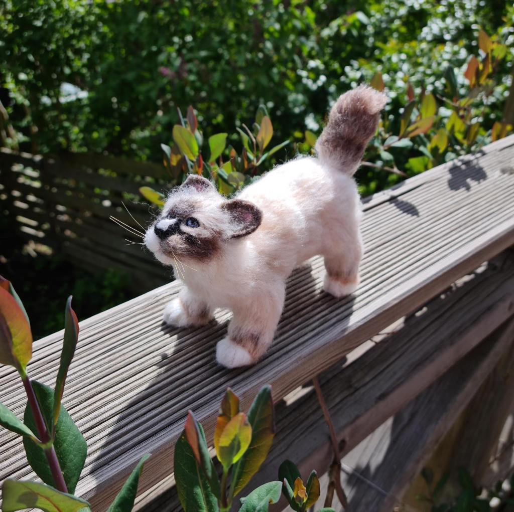 Jag har ju glömt att visa dig min senaste tovade gåva! Det är ett porträtt av en liten ragdoll kattunge som har en väldigt söt liten nos. Undrar om hon är släkt med Maja Gräddnos i Pelle Svanslös? Vad tror du?