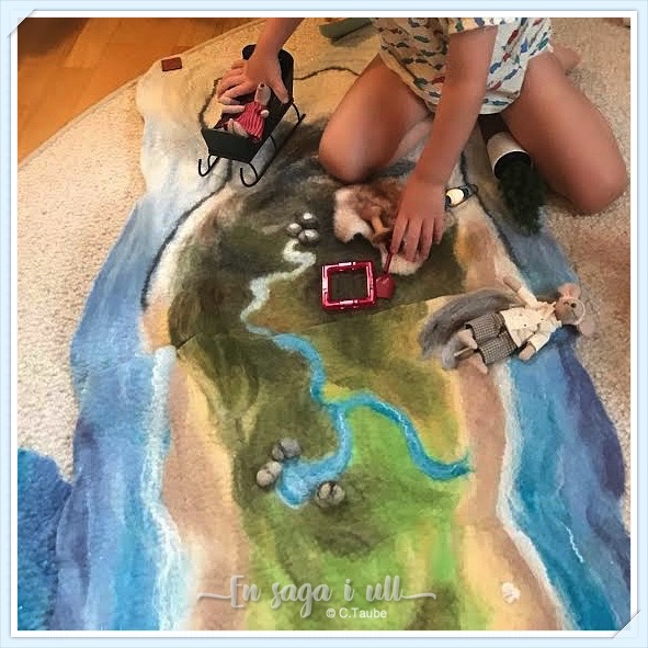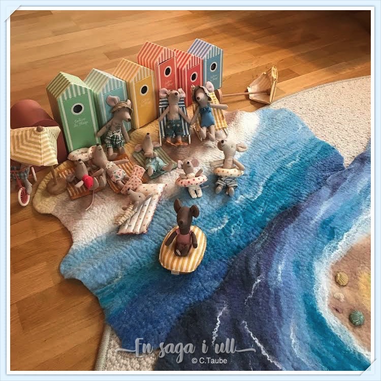 Kommer ni ihåg det snöiga berget som jag tovade åt en kund? Samma kund hade tidigare beställt två andra lekmattor och nu fick jag bilder på när alla tre lekmattorna används i leken med alla möss.