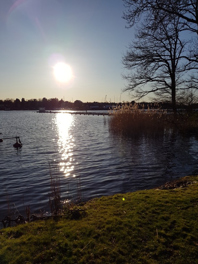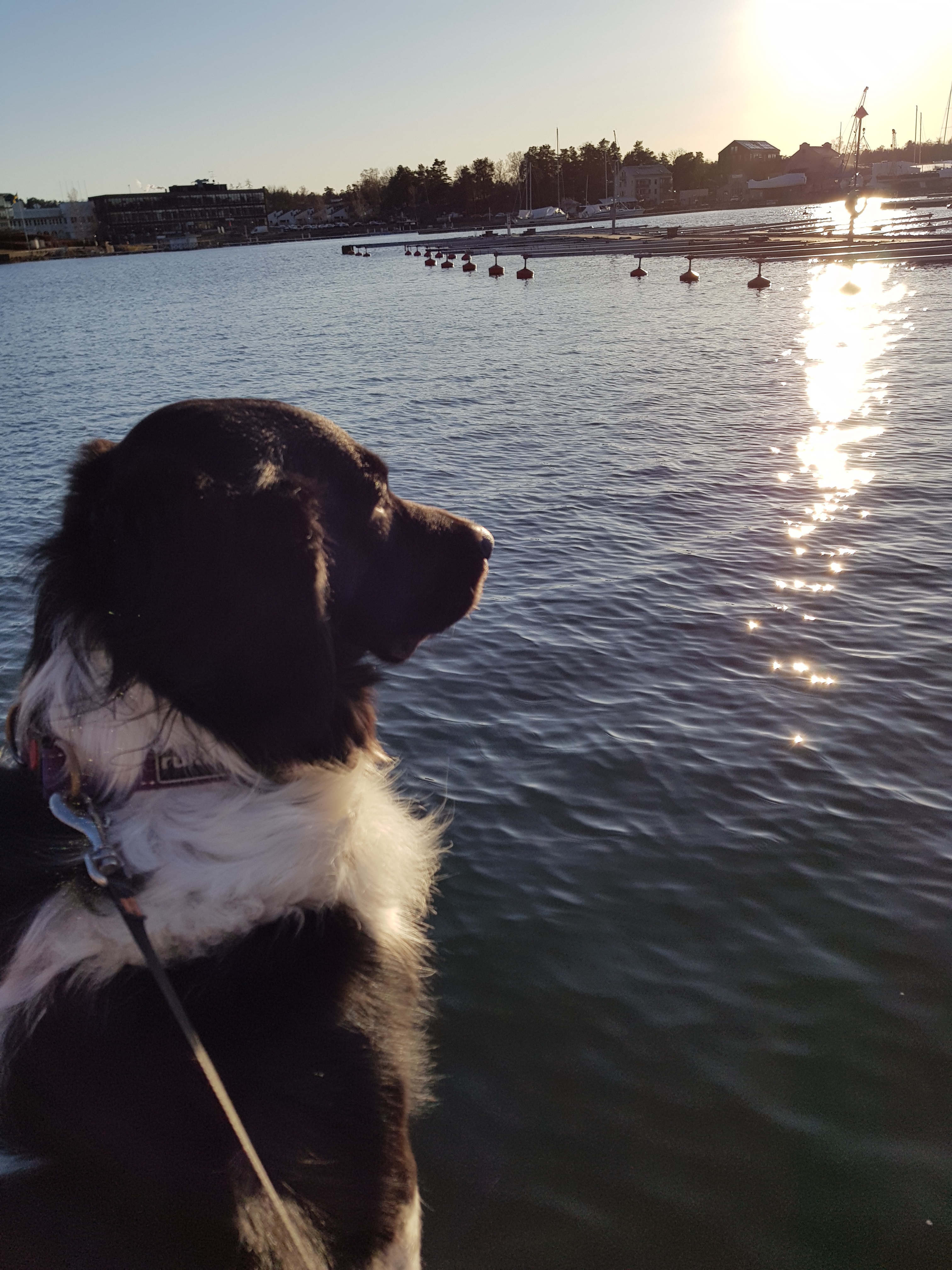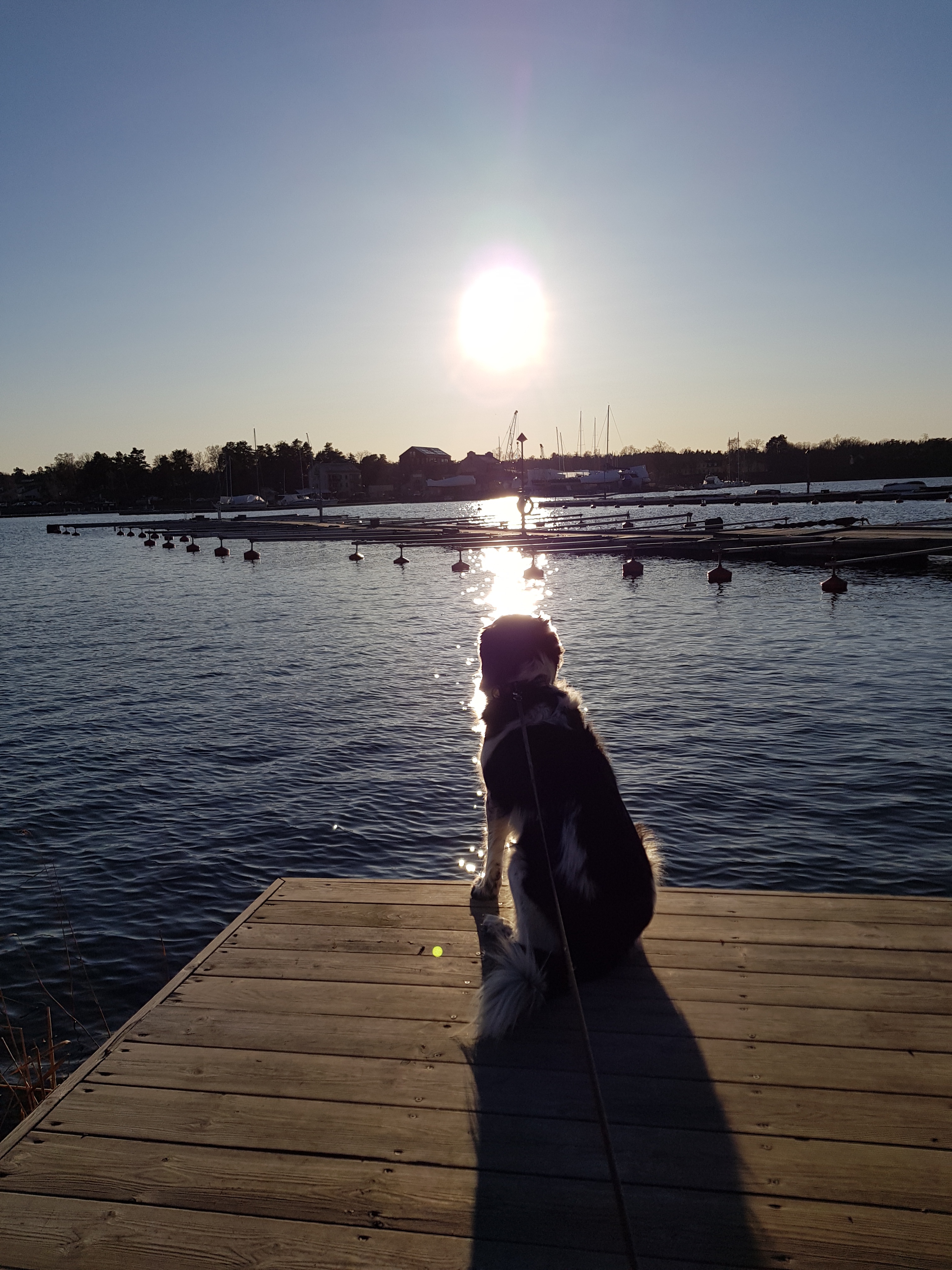 En promenad i solskenet, med talgoxarnas kvitter i träden och vovven Nikita traskandes bredvid. Så härligt med fågelkvitter och äntligen SOL! 🎶 Vi styrde stegen ner mot hamnen och bryggan där Nikita älskar att sitta och blicka ut över hamnen. En stunds sinnesro, känna doften av hav och höra vågorna skvalpa. Även vovvar tycker om det.