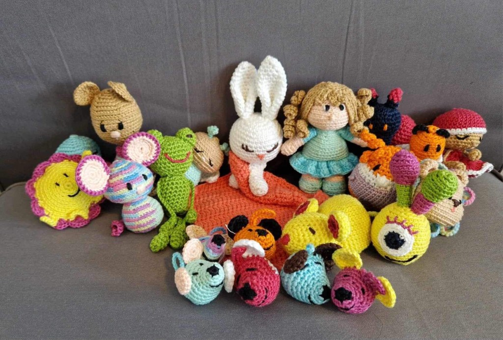 Hej, hej! 👋🏻 Nu är jag tillbaka igen efter en lång och härlig semester. 😃 I år fick ullen stanna hemma, så nu är jag mer än taggad att få börja igen. 🤗 Men jag har inte varit helt utan handarbete. 😉 Ibland är det skönt att bara slå sig ner, plocka fram garn och virknål och skapa små Tröstemöss.