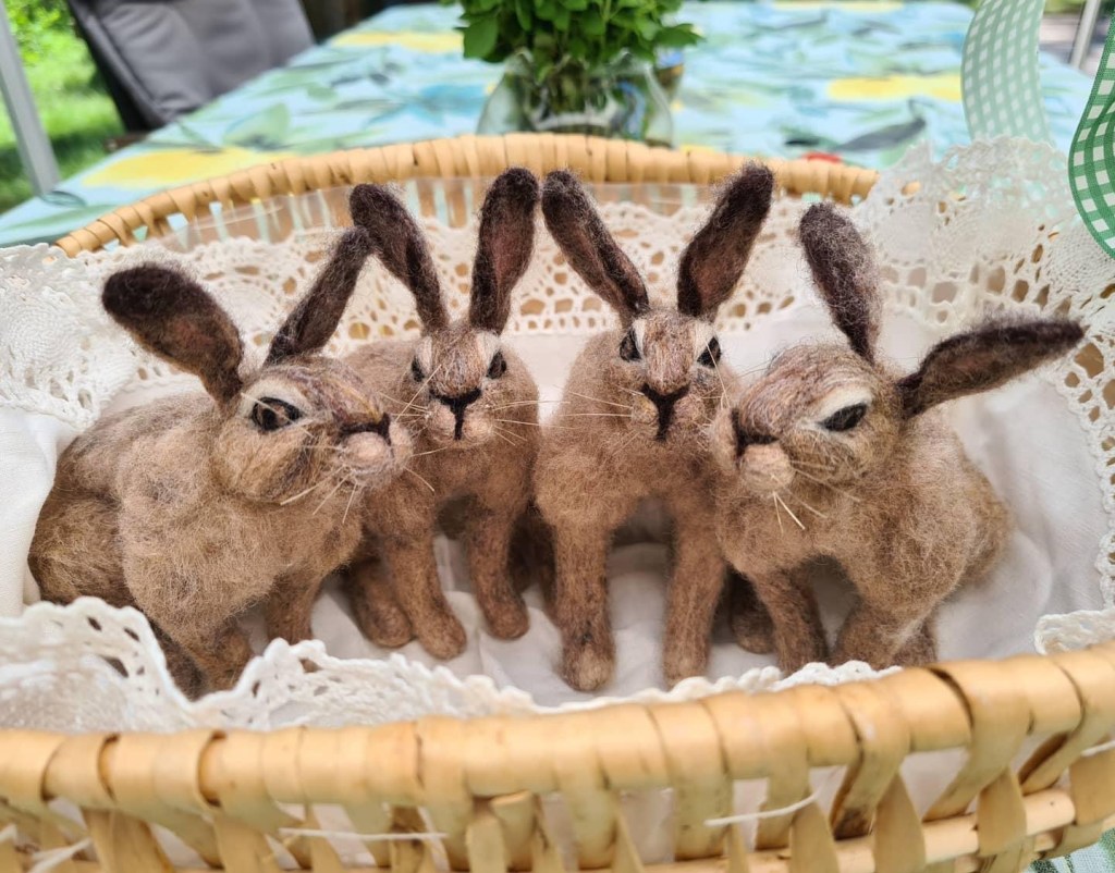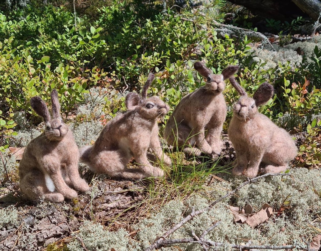 För 5 år sedan tovade jag min första kossa. Då var jag nybörjare och testade mig fram. Allting jag tovade var helt ull, rakt igenom. Efter ett tag började jag använda armatur i mina figurer. Dels är det lättare att få dom i rätt form och så kan man böja till dom i den ställningen man vill ha.