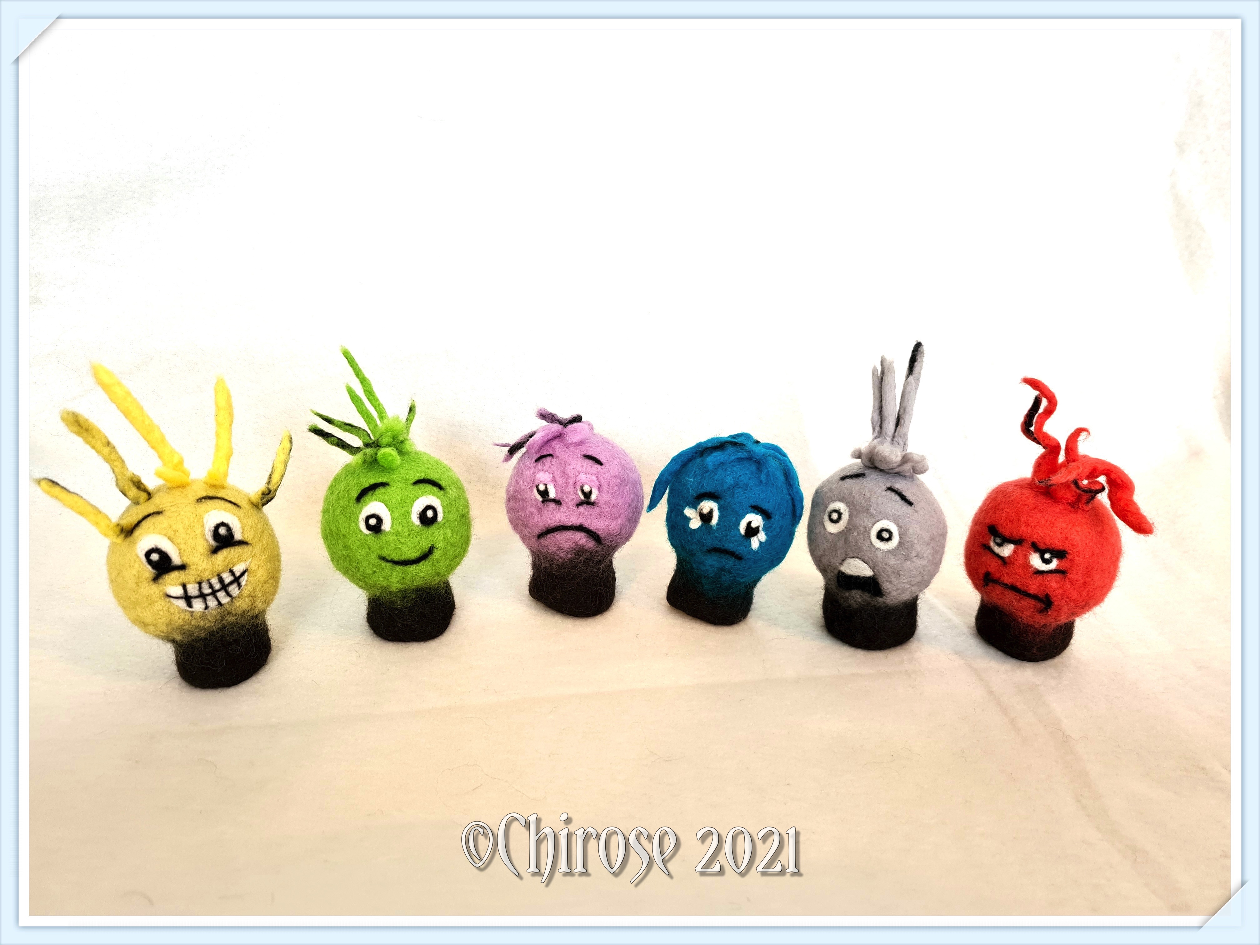 6 st olika känslor. Dom går att få i samma färg för den som önskar.