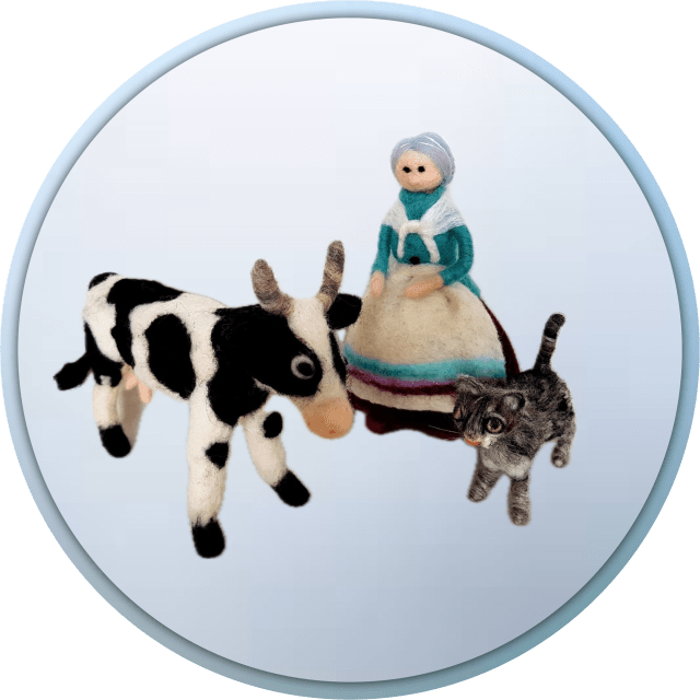 Alla figurer i sagorna går att beställa som enstaka hantverk under kategorin Till pedagogiska påsar