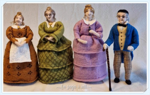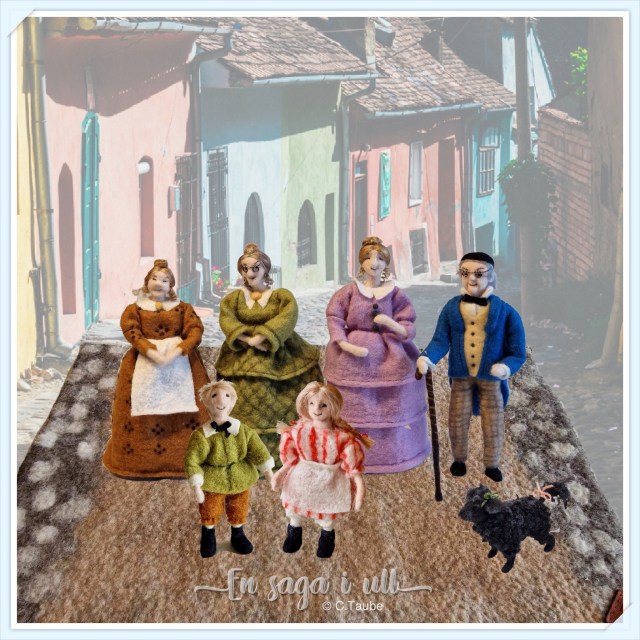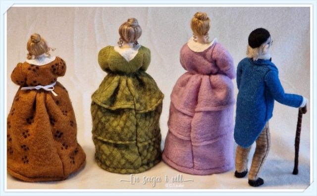 Berättelserna utspelar sig i en småstad på 1840-talet och huvudpersonerna bär tidstypiska kläder som krinolin och bahytt samt pantalonger och kalott.