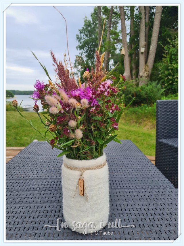 Gamla glasburkar får en ny användning när dom tovas in i ull.