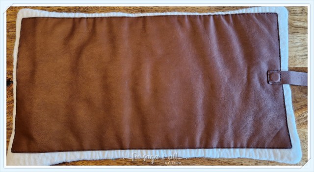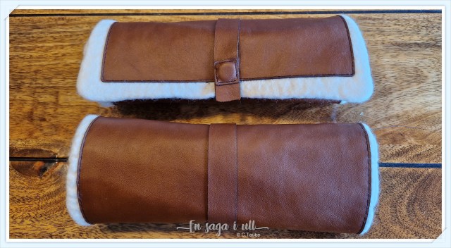 Lägg till en undersida av läder så att det inte fastnar mossa och torra löv i ullen. Med hjälp av läderremmen kan man rulla ihop dynan och fästa lätt med en magnet.
