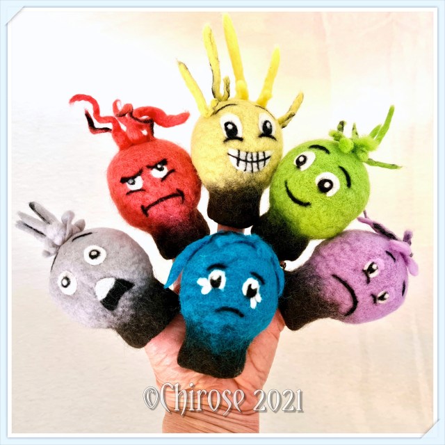 När jag började nåltova figurer var just Känsloglobisarna bland det första jag tovade. Sedan vidareutvecklades dom i samarbete med en förskollärare, så att varje känsla fick en färg. Dom har använts i förskolans undervisning och barnen har frågat efter dom när dom inte har varit tillgängliga har jag hört. 😊