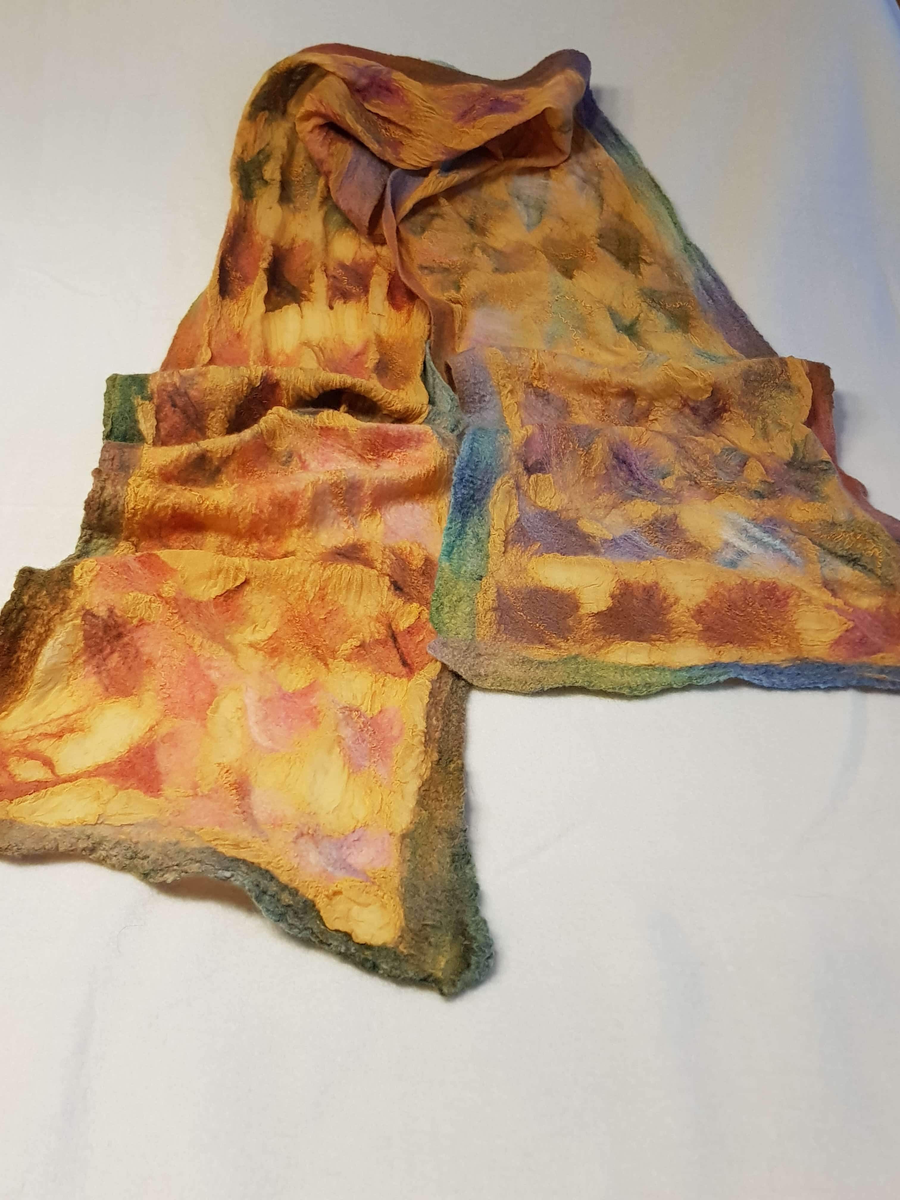 Jag köpte en läcker ulltops i många olika färger , en ulltops i fin, fin merinoull. Till det guldgul mullbärssilke och en gul sidenchiffong som mätte 40 cm x 300 cm.