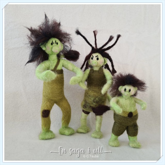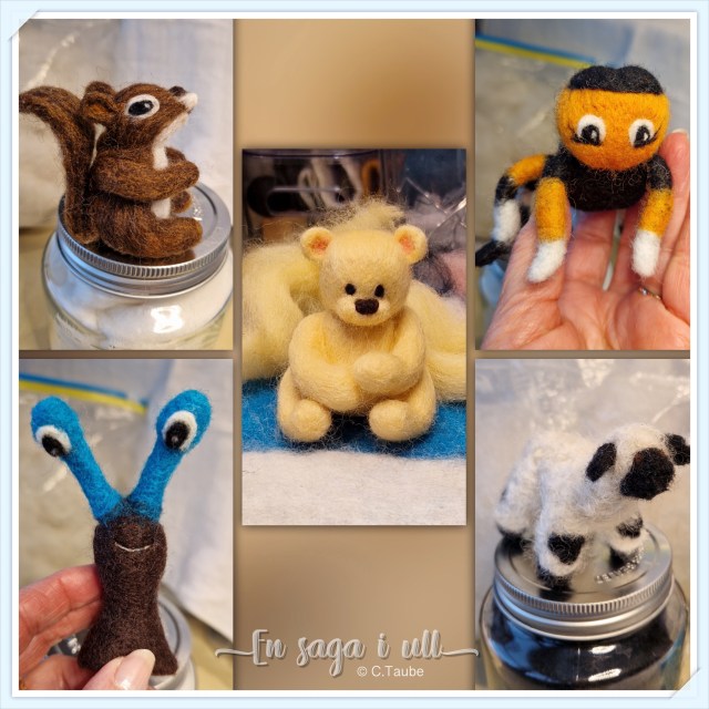 Alla figurer är nåltovade i enbart ull, här finns inga ögon och nosar av plast som små barnhänder kan rycka av och smaka på.